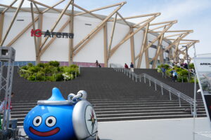 今週末は「ドラゴンクエストウォーキング<中部>」が開催されており、IGアリーナや名城公園を含む一帯はたくさんの観光客で賑わっています。そして、この日のバスケゲーム自体もドラクエとのコラボ仕様でした。私自身、幼少期からドラクエシリーズはプレイしてきましたので、めちゃくちゃテンションが上がりましたね!(試合前の選手紹介では、ホーム名古屋D.D.の時は勇者のテーマ、アウェイ滋賀レイクスの時は戦闘BGMだったり)開場まで時間があったので、ドラゴンクエストウォーキングのイベントにもほんの少し参加しました。